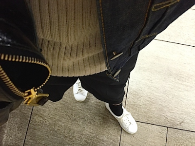 疲れ気味の今日はヒールをやめてスニーカーで。お気に入りのadidas ORIGINALS by HYKE HAILLET WHITE はラクでスタイリッシュ♡昔、初めて大枚叩いて買ったgreenのデニムは今もずっと愛用。きっとこのスニーカーも丁寧に長〜く愛用すると思う。