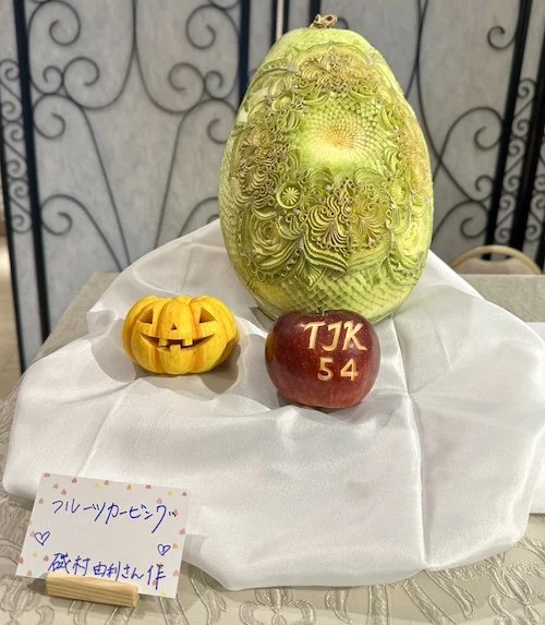 フルーツカーヴィングのプロ、由利がこの日のために素晴らしい作品を⭐️