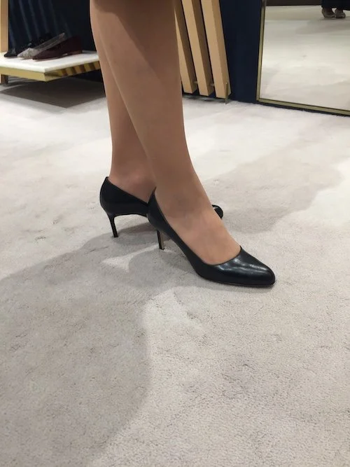微妙な違いでも、ヒールの高さ、甲の見え方で印象もスーツ、ボトムスに相性の良いものは異なる。