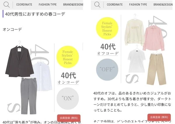 この春おすすめの「大人男性好印象・ON& OFF 6コーデ」の紹介